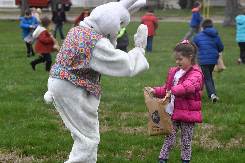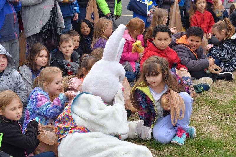 The children cheered and "bunny-hopped" as the Easter Bunny made an appearance, giving hugs and high-fives.