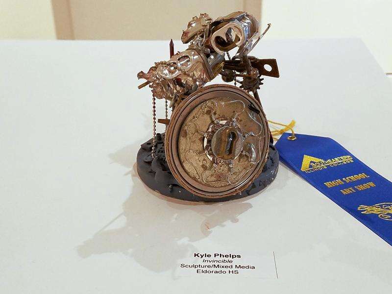 Phelps said he prefers drawing, but he recently branched out into mixed media. The decision landed him a first-place ribbon for his work "Invincible."